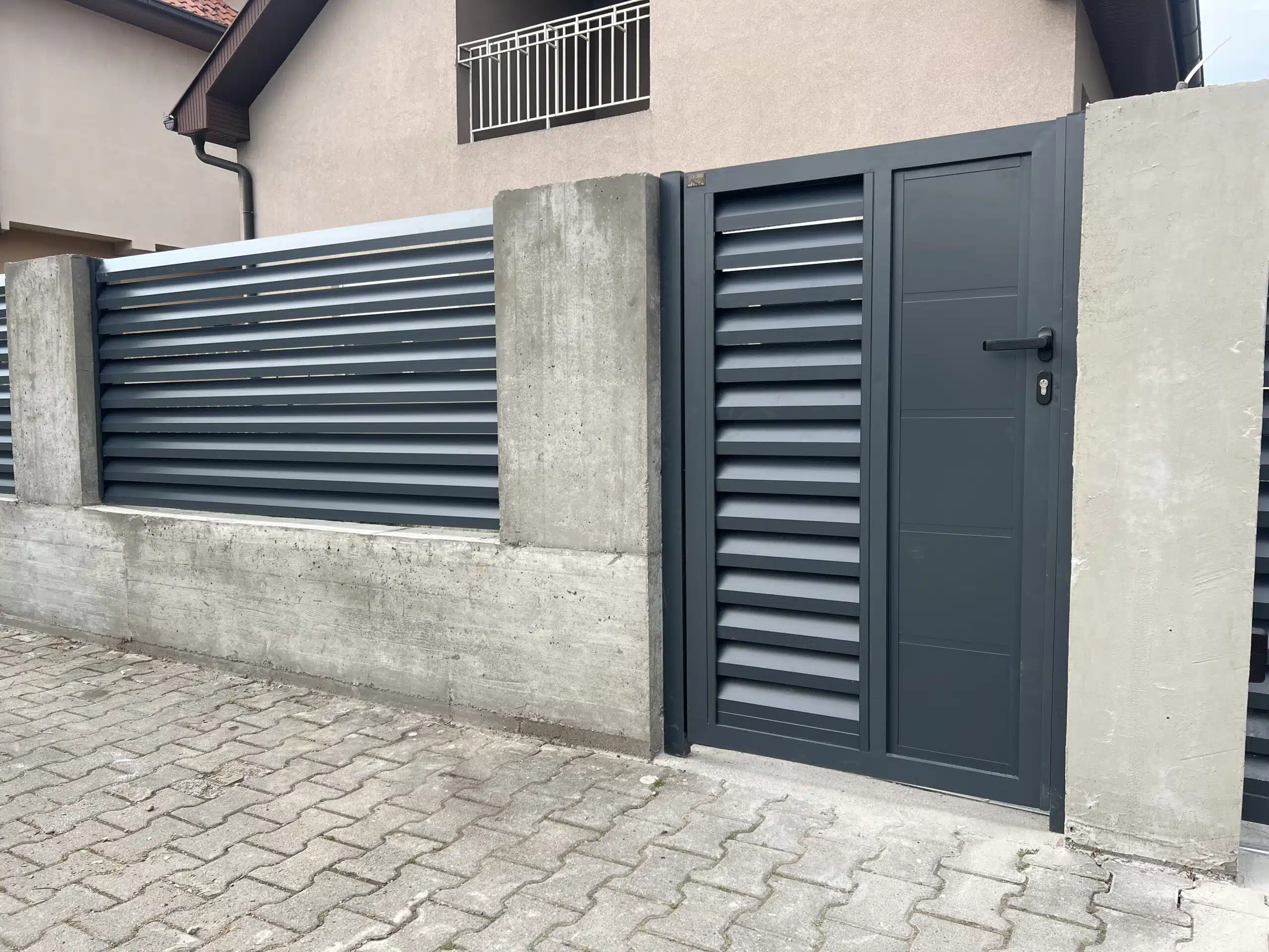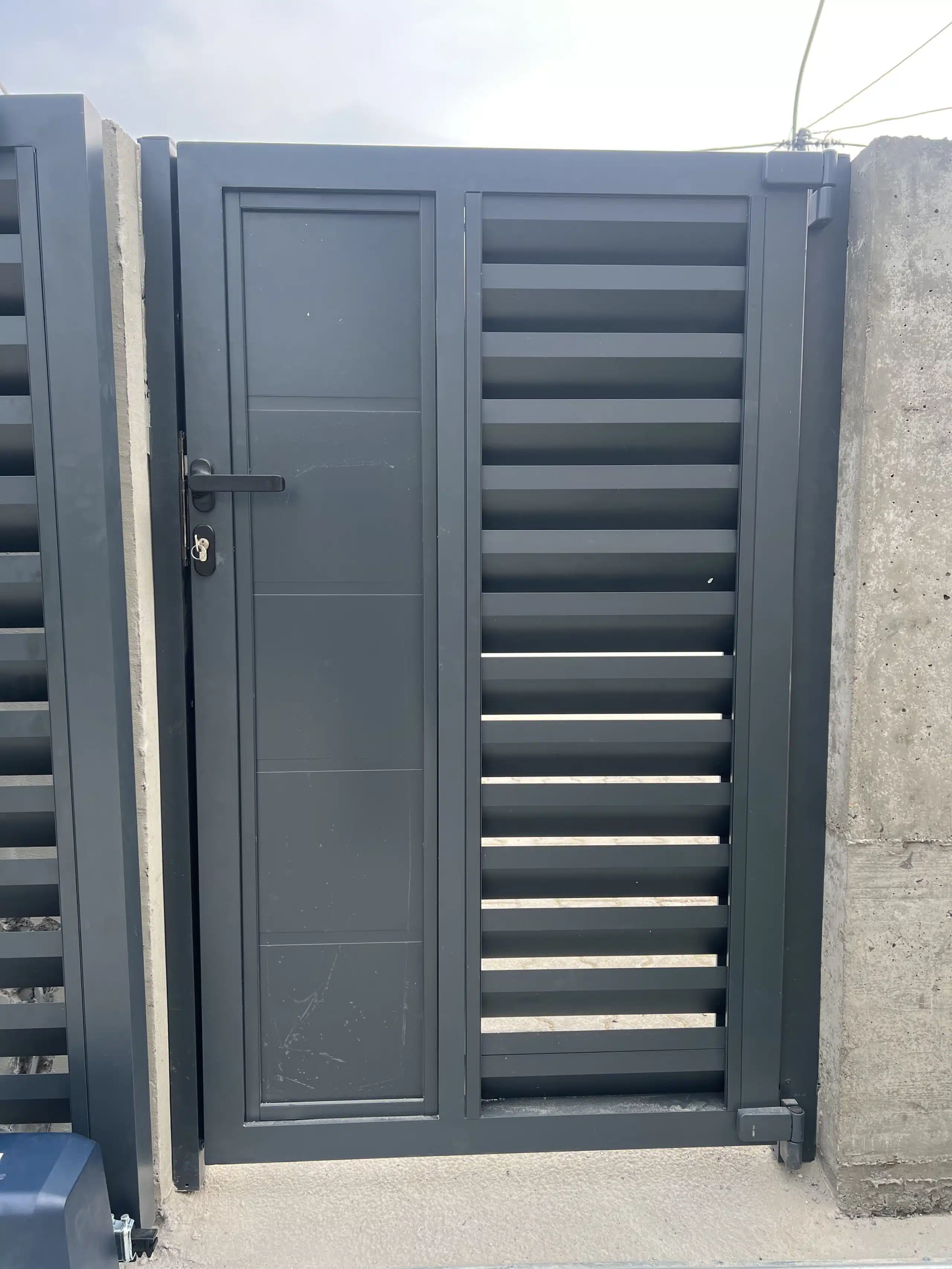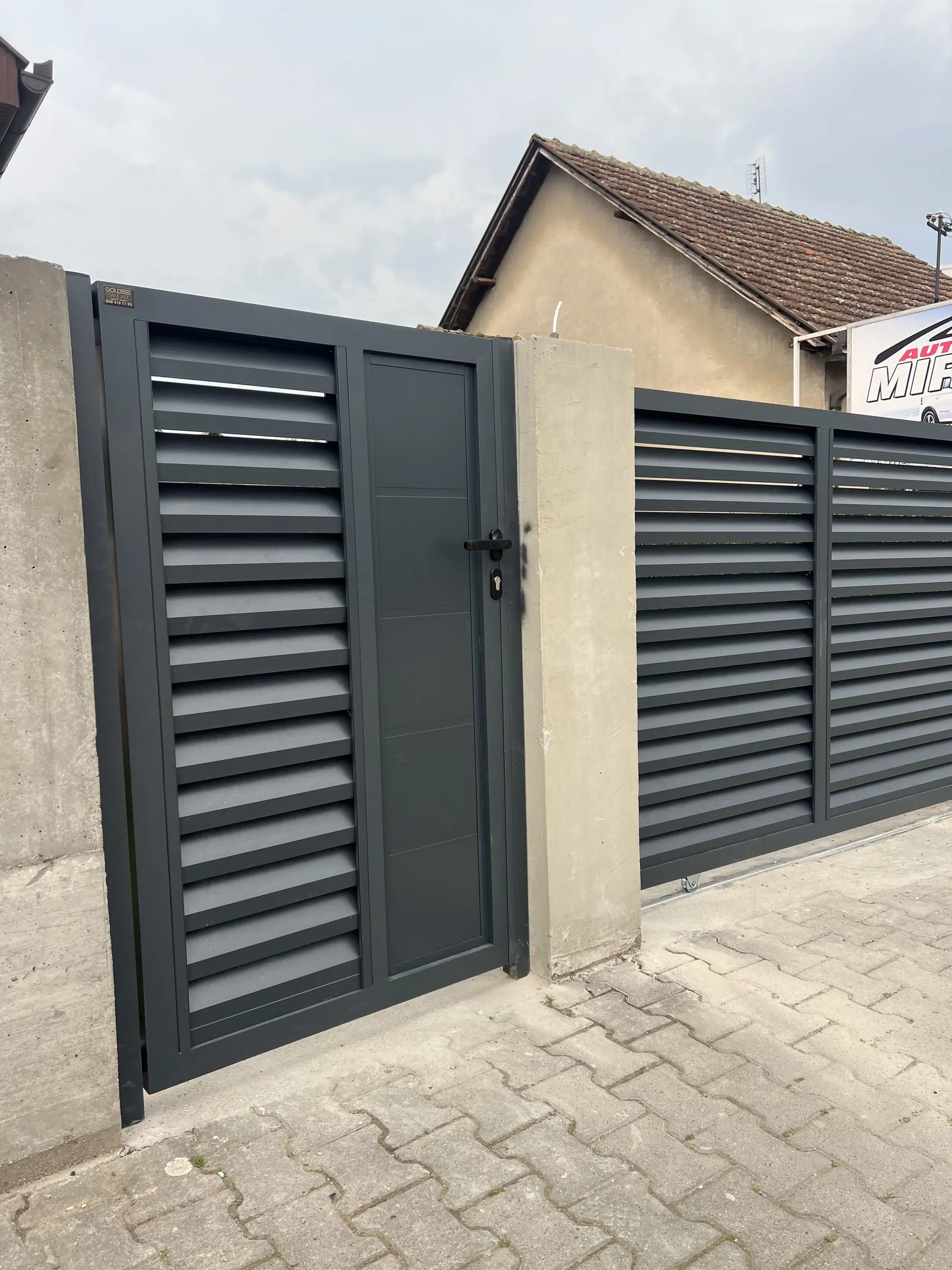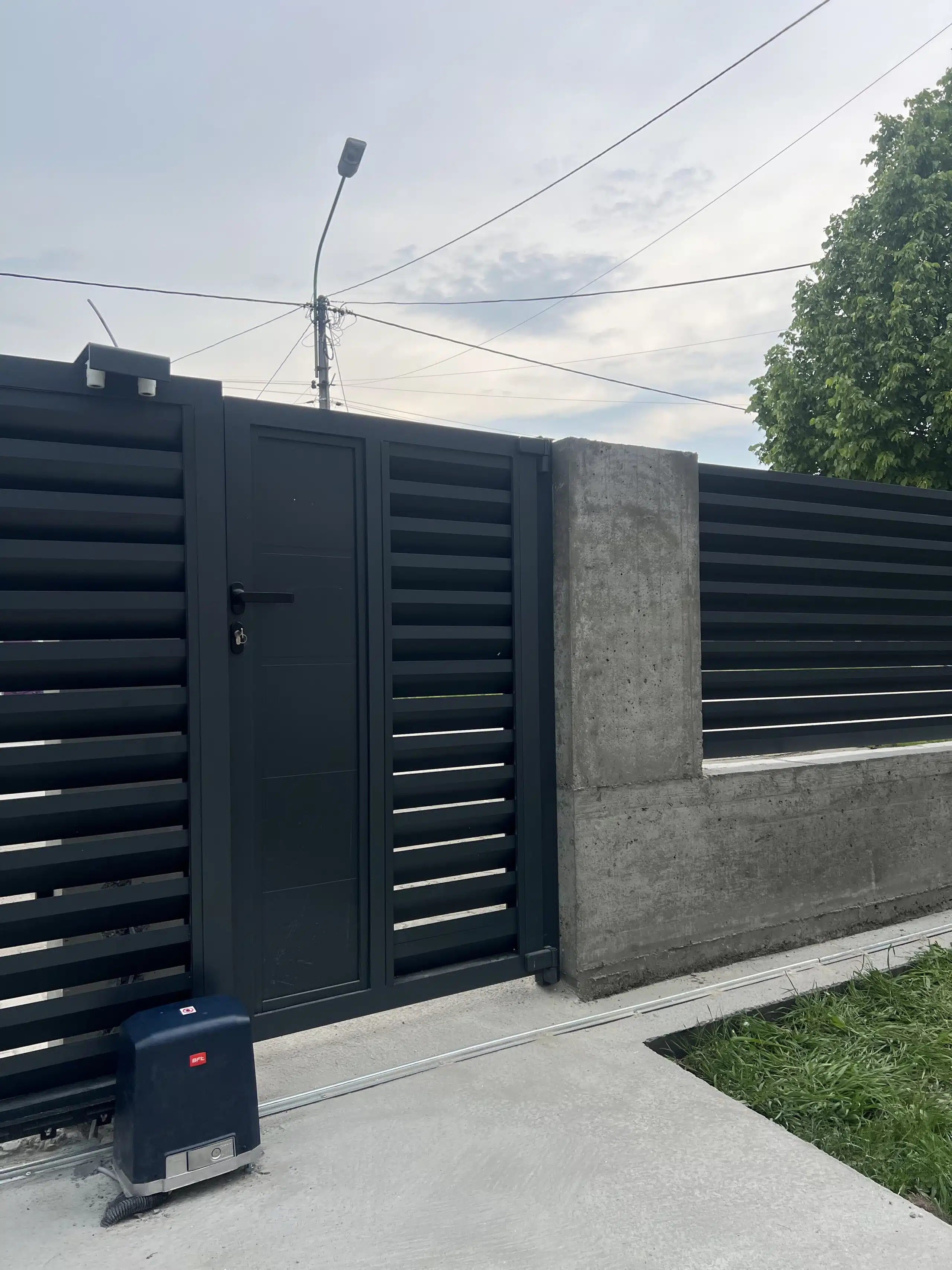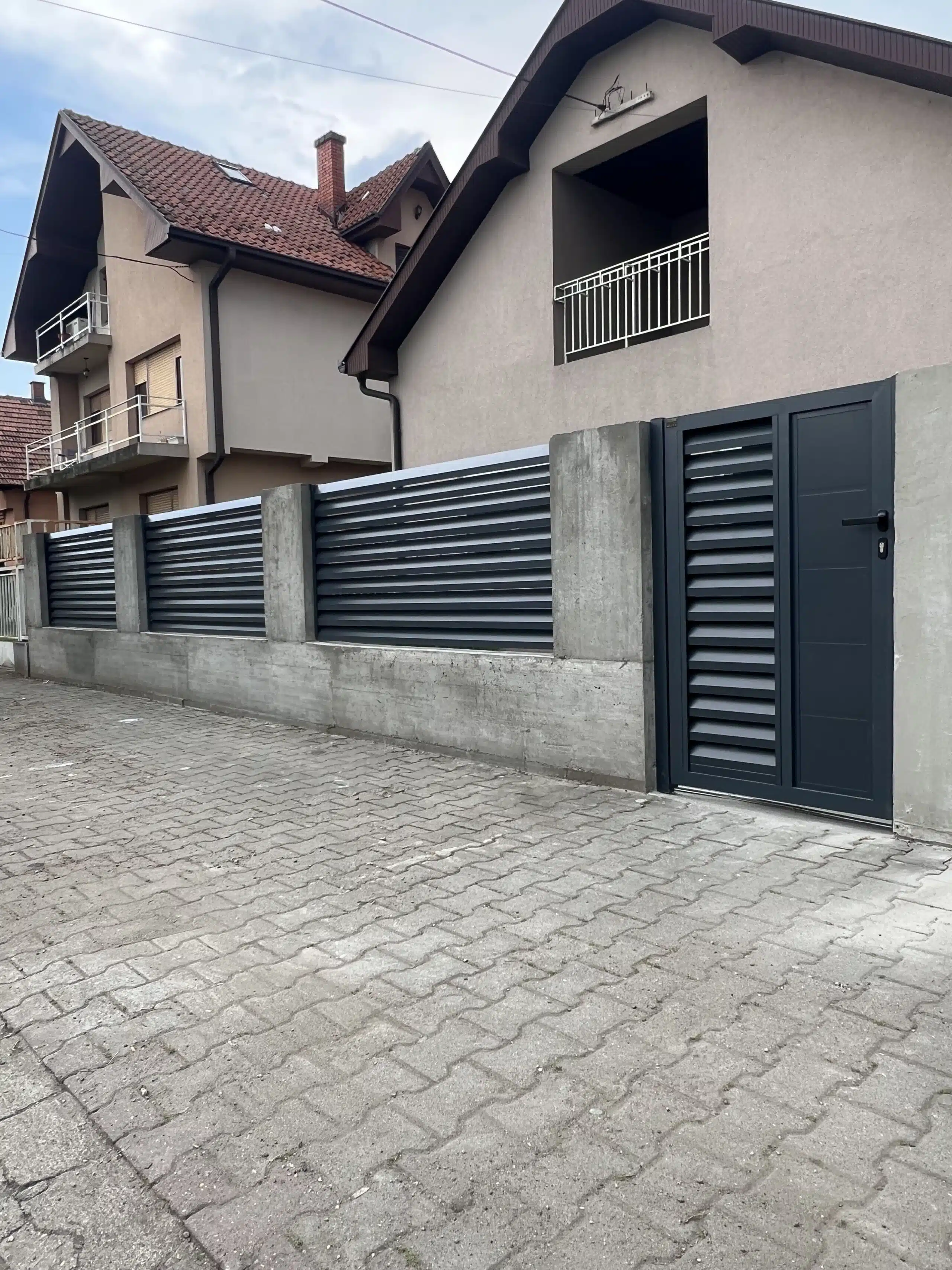 🔹 Aluminijumska ograda između betonskih stubova 🔹 Klizna kapija izrađena u elegantnom Sicilia modelu, poznatom po modernim linijama i čvrstoj konstrukciji 🔹 Kapija za pešački ulaz dodatno opremljena alu panelom radi potpune privatnosti 🔹 Postavljena naša pocinkovana šina, za dugotrajnu otpornost na koroziju i besprekorno klizanje 🔹 Ugrađen automatski motor BFT, italijanske proizvodnje, sa senzorima i svetlosnom signalizacijom