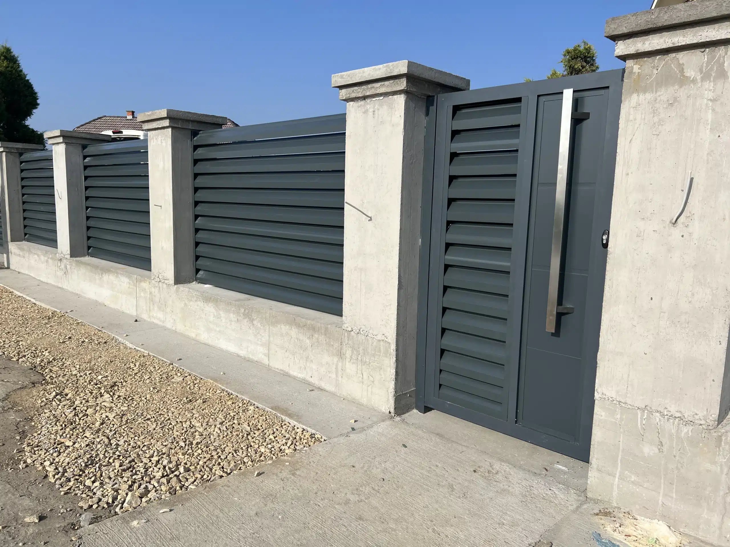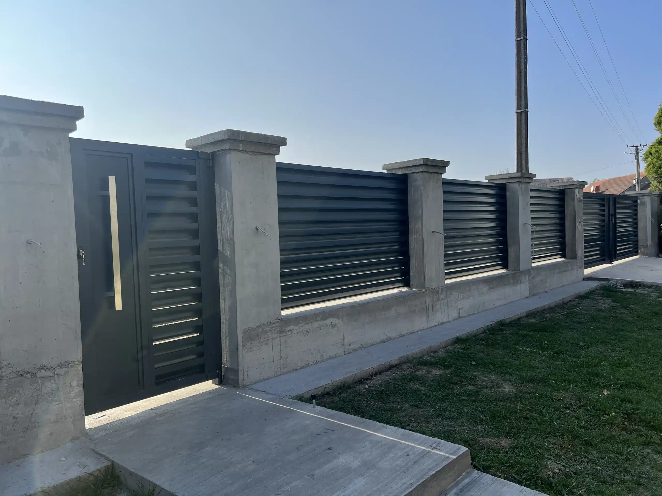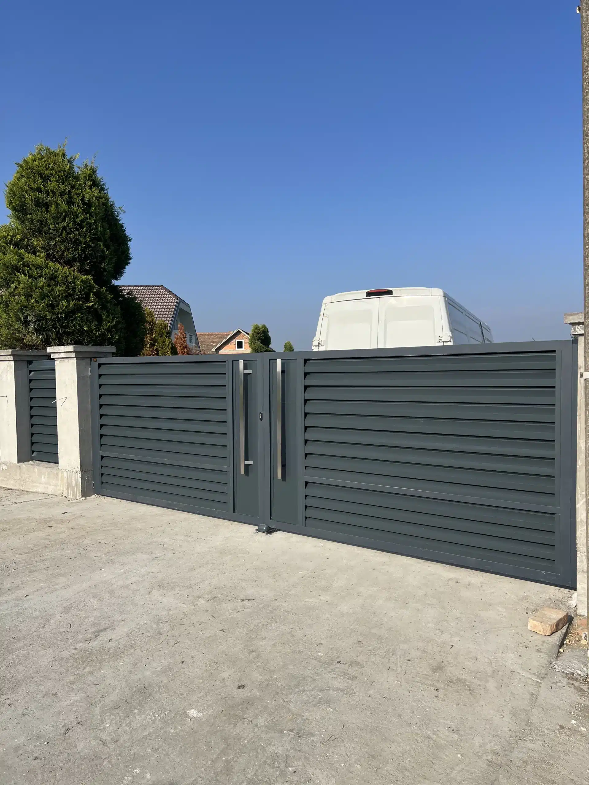 Aluminijumska ograda + kapija za pešački ulaz + velika krilna kapija – montaža u Zminjaku (Šabac)