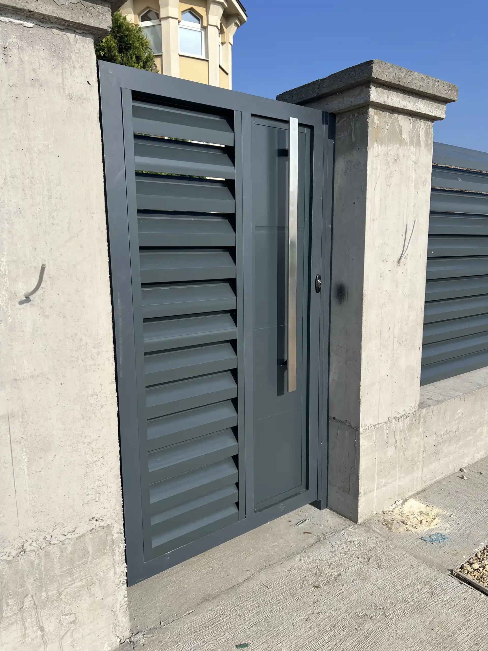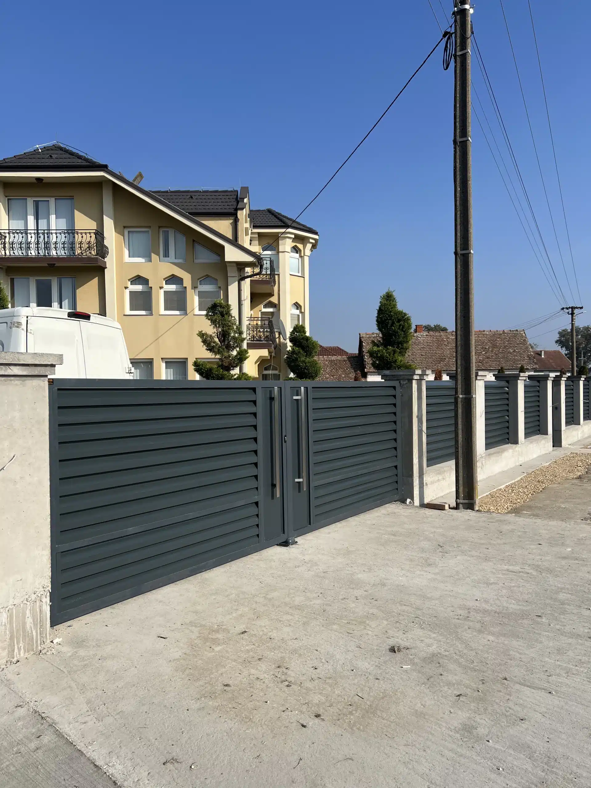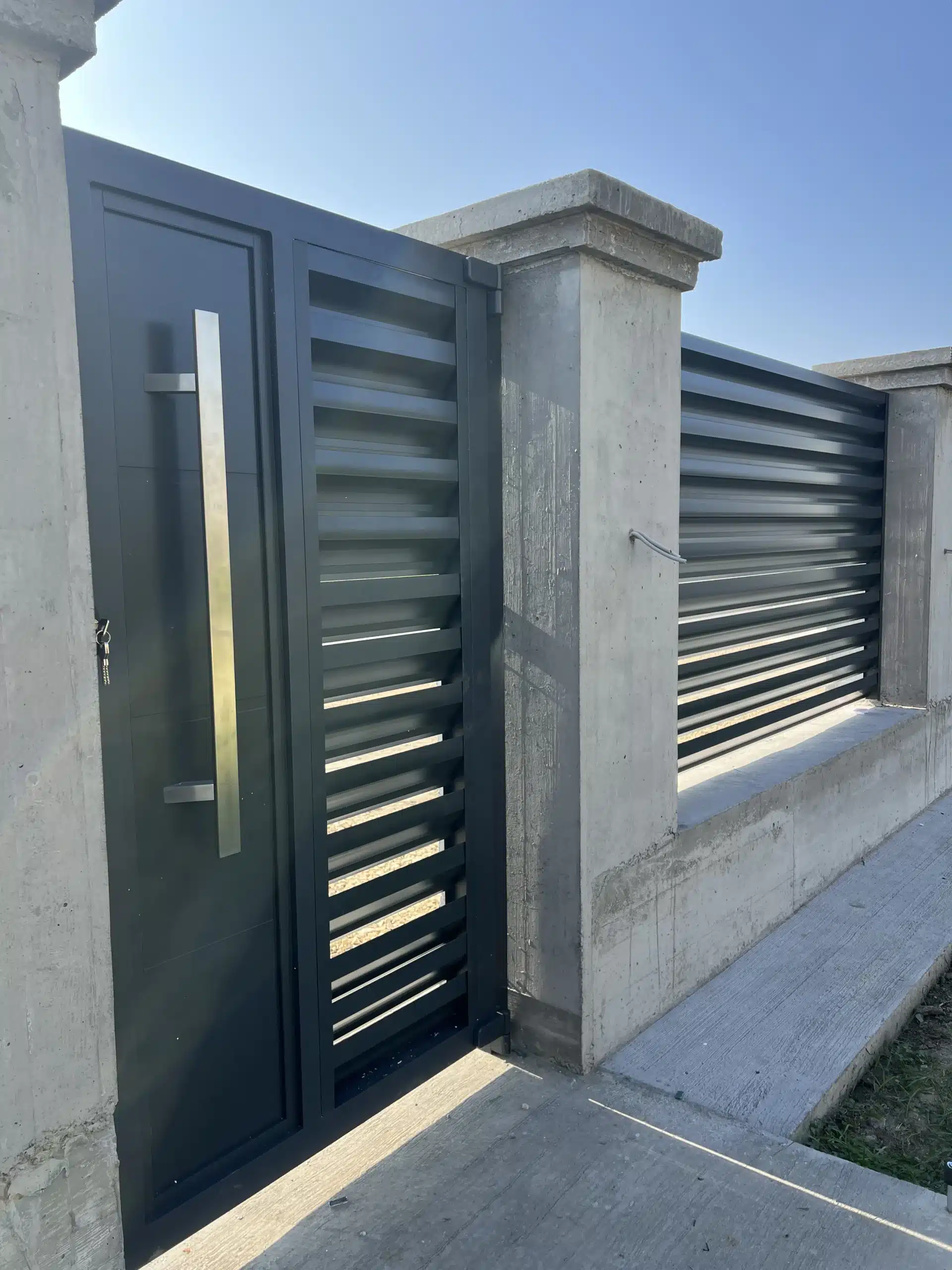 🔹️ Proizvedene su po meri i namontirane: kapija za pešački ulaz i velika krilna kapija za automobilski ulaz u dvorište.