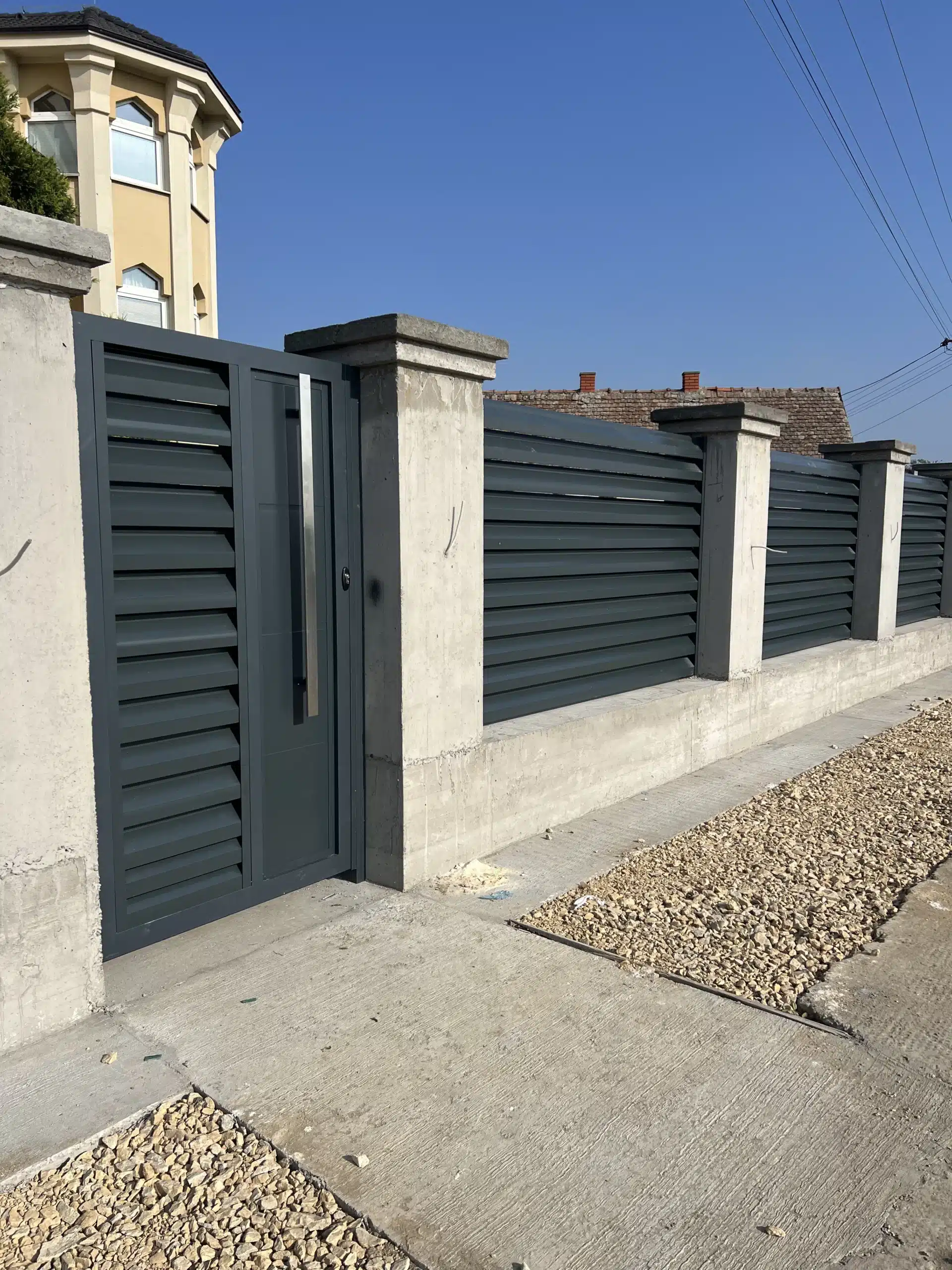 🔹️ Proizvedna je i namontirana aluminijumska ograda u poljima između zidanih stubova.