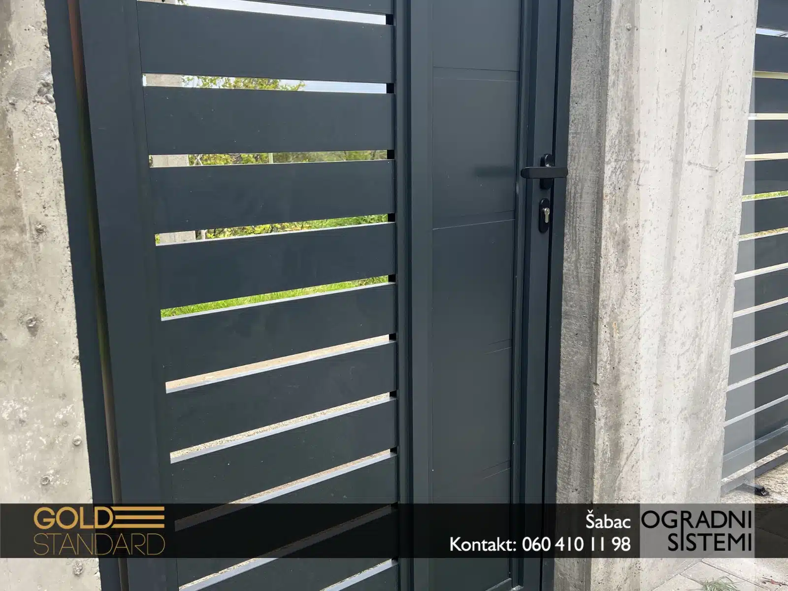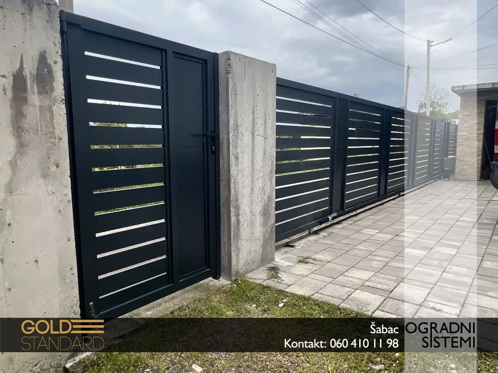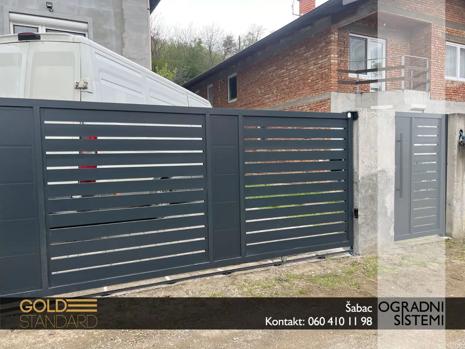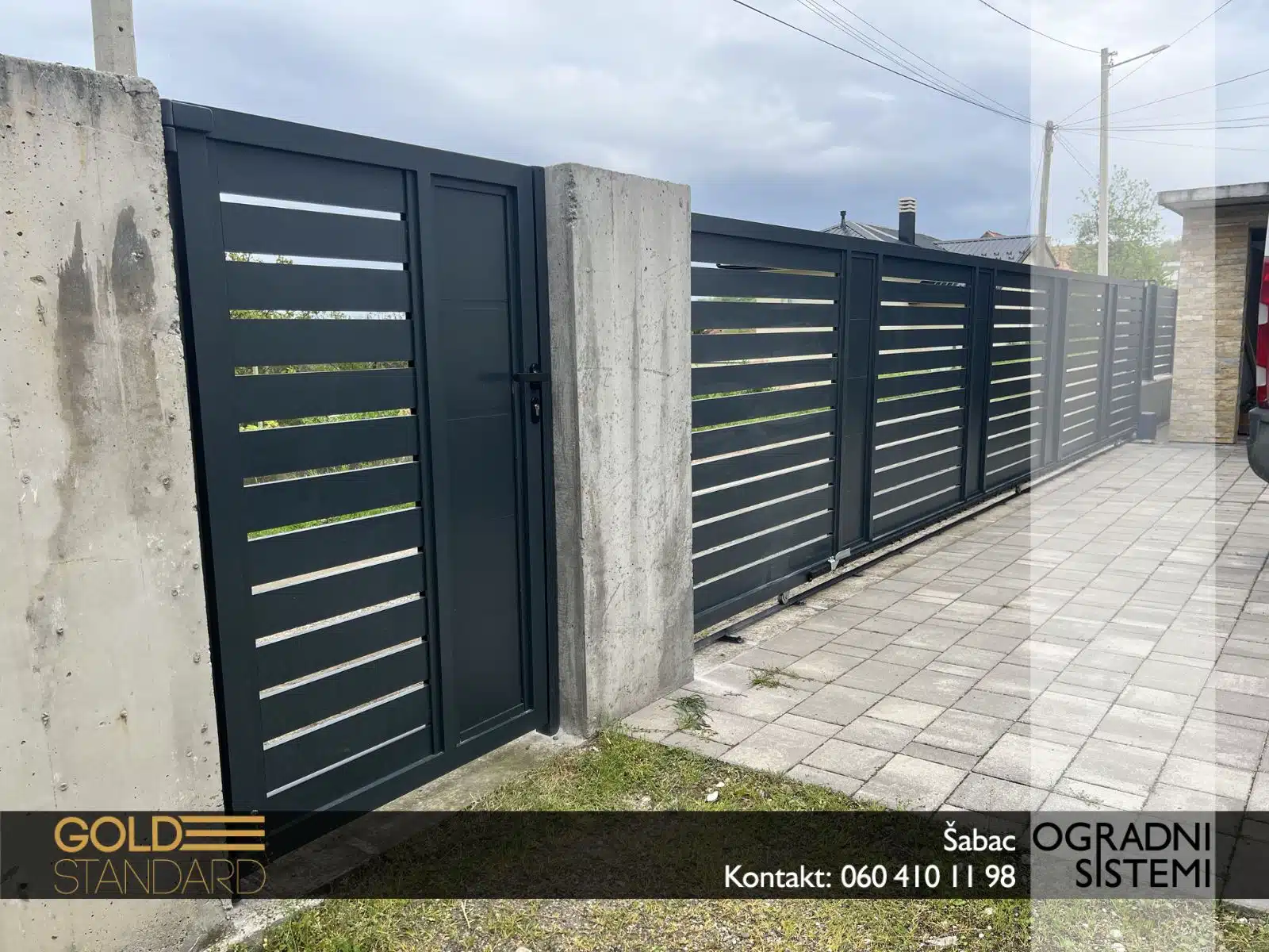 – Klizna aluminijumska kapija sa aluminijumskim panelima – čvrsta, tiha i dugotrajna