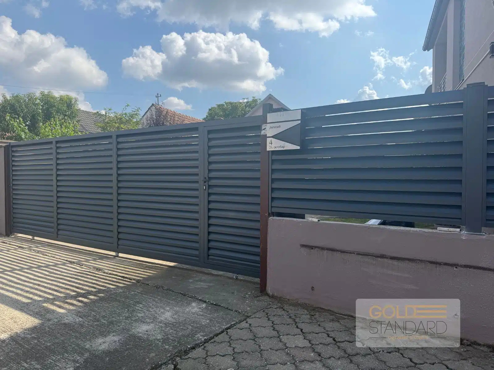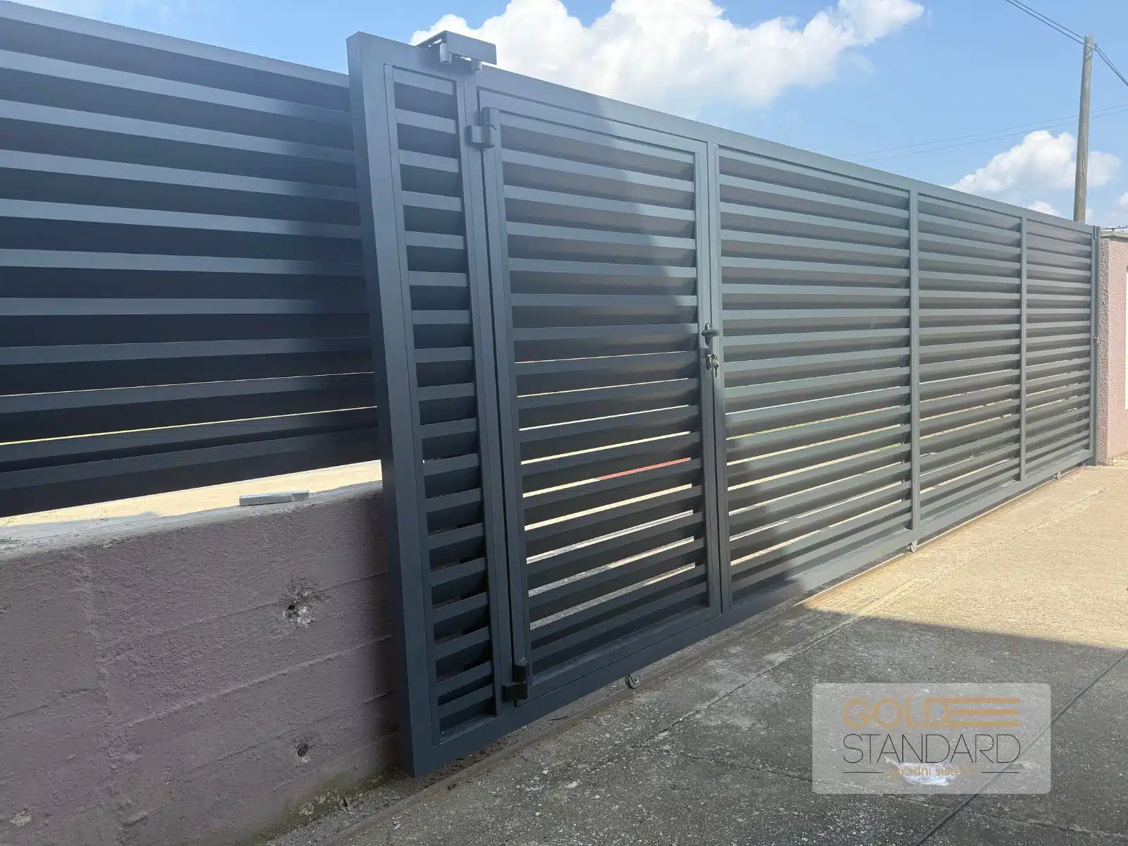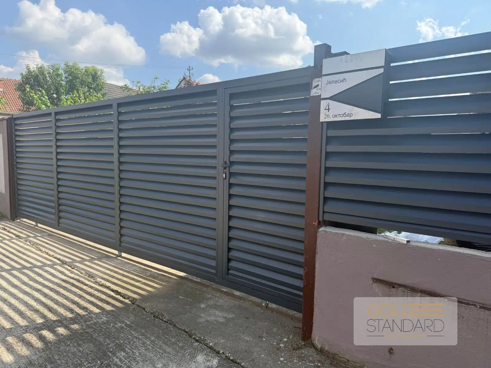U Buđanovcima smo završili još jedan zanimljiv projekat – kliznu aluminijumsku kapiju dimenzija 5×2 metra u Sicilia modelu. Ono što ovaj projekat čini posebnim jeste mala kapija za pešački ulaz, integrisana direktno u kliznu kapiju, što je praktično rešenje za svakodnevnu upotrebu i maksimalno iskorišćenje prostora.