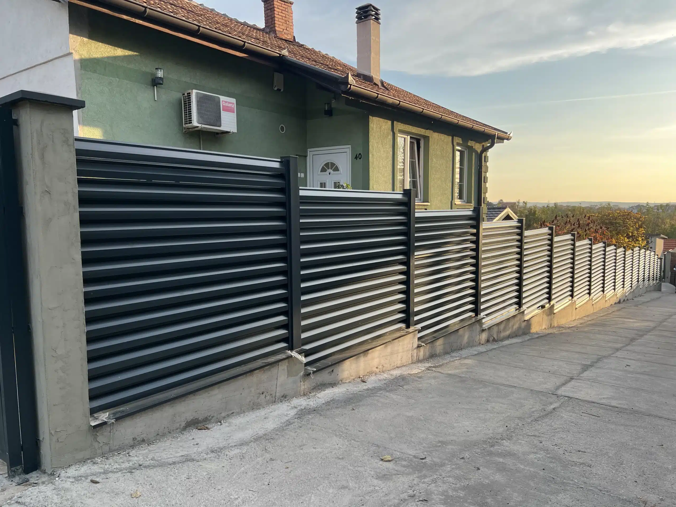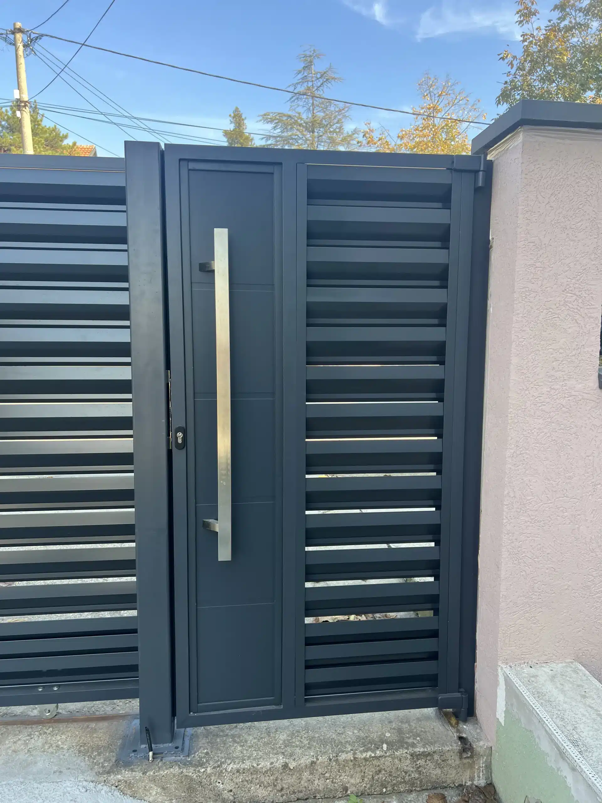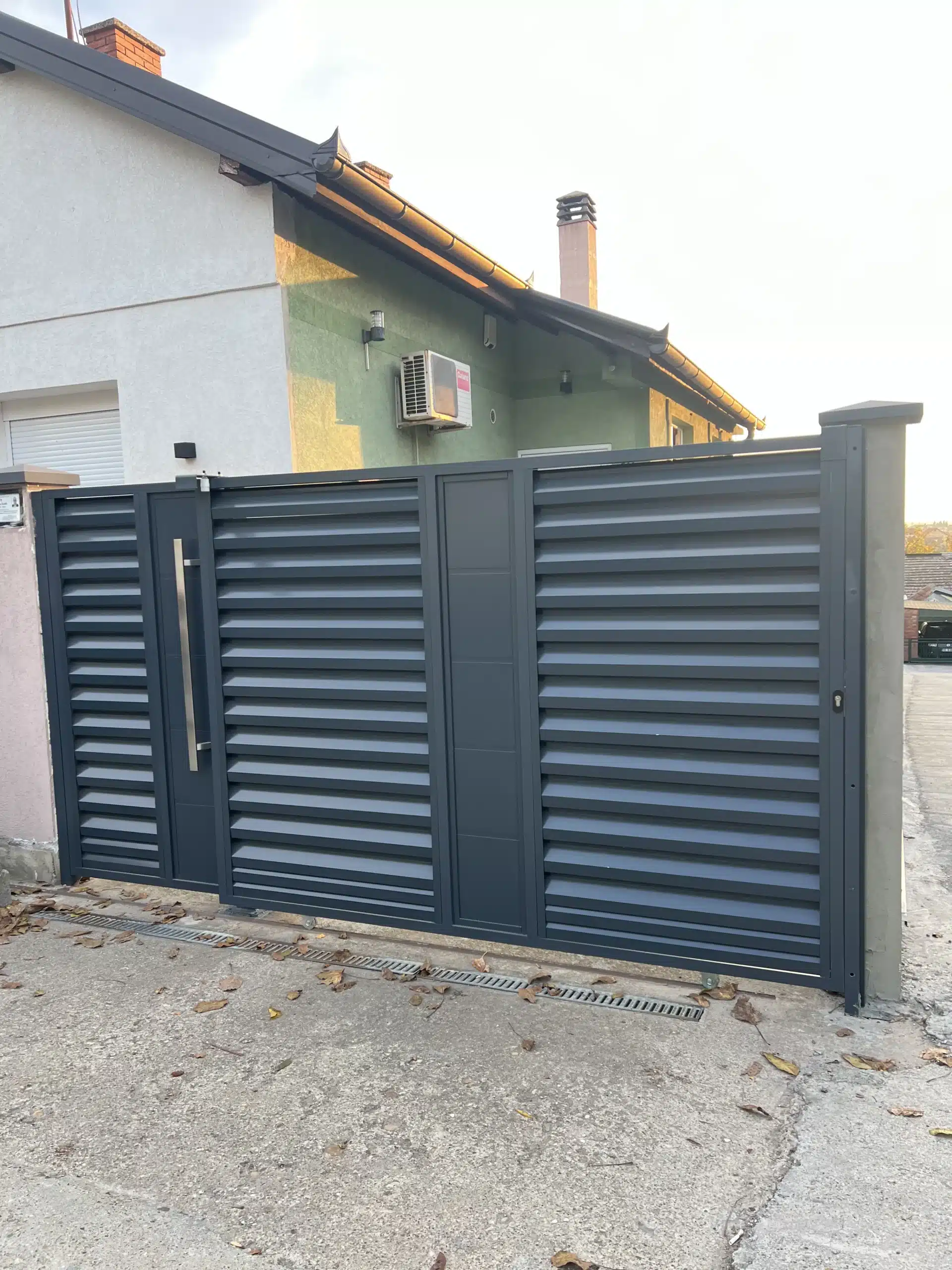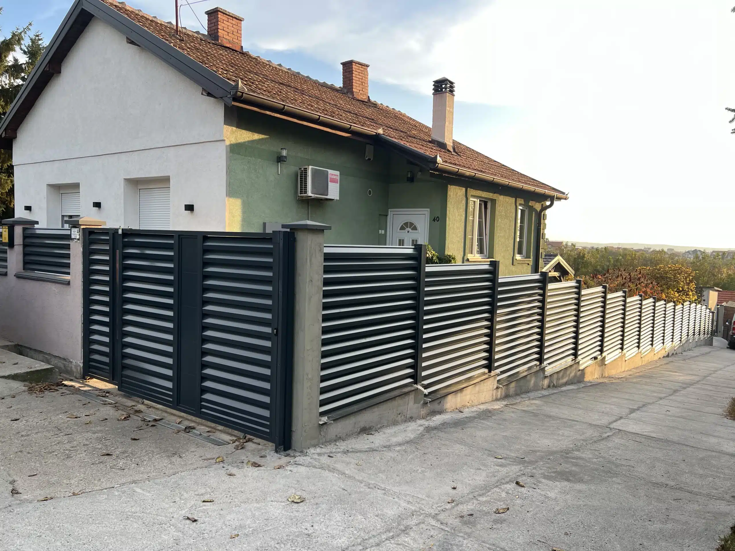 🔶️ Opis posla: 🔹️ Proizvedna je i namontirana aluminijumska ograda u poljima između stubova. Ukupna dužina 35 metara. 🔹️ Proizvedene su po meri i namontirane: kapija za pešački ulaz sa masivnim inox rukohvatom + mala klizna kapija za ulaz u dvorište sa prednji strane + velika samonosiva kapija na daljinsko otvaranj (dužina 6 metara). 🔹️ Za proizvodnju kapija i ograde korišćen je “Sicilia” model u kombinaciji sa alu panelima. 🔹️ Ugrađen je visokokvalitetni “BFT” motor za klizne kapije sa senzorima za prepreke. 🔹️ Boja ograda i kapija: 7016 Antracit (mat)