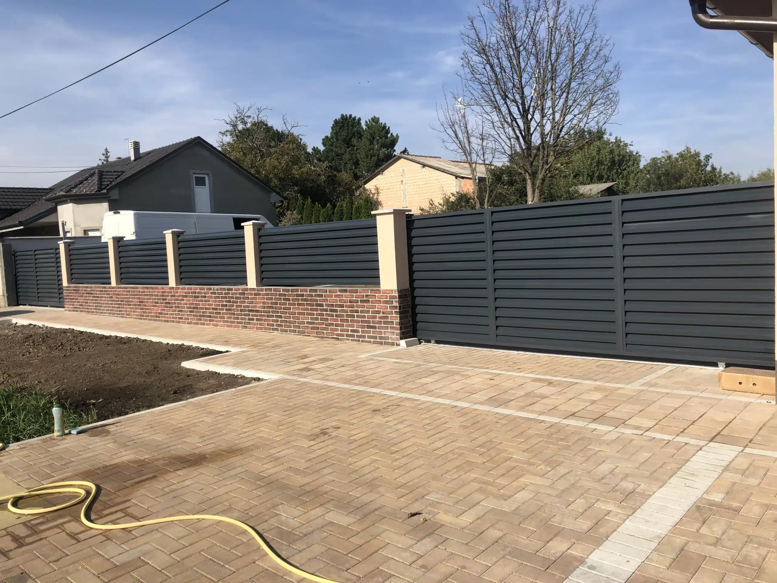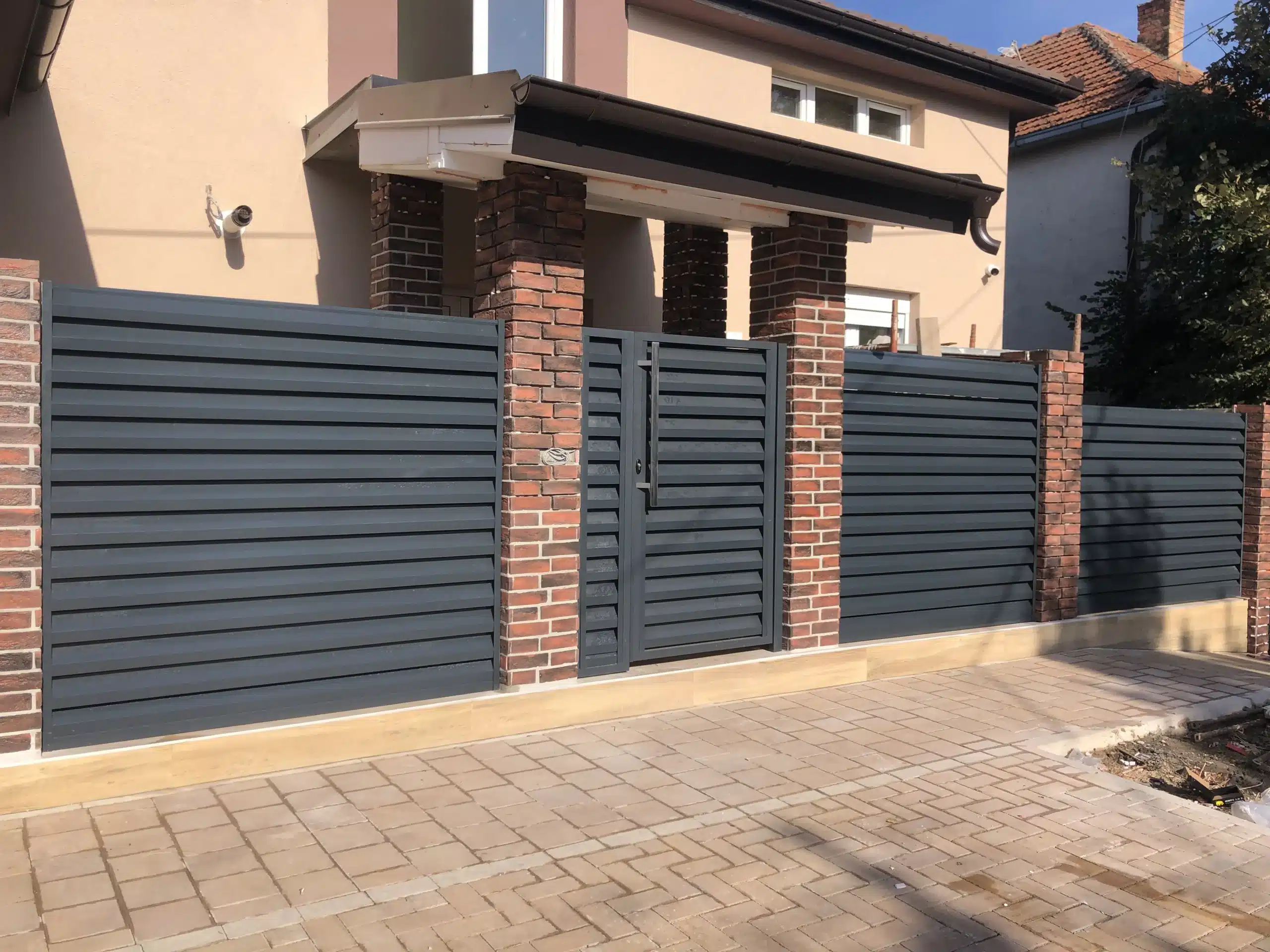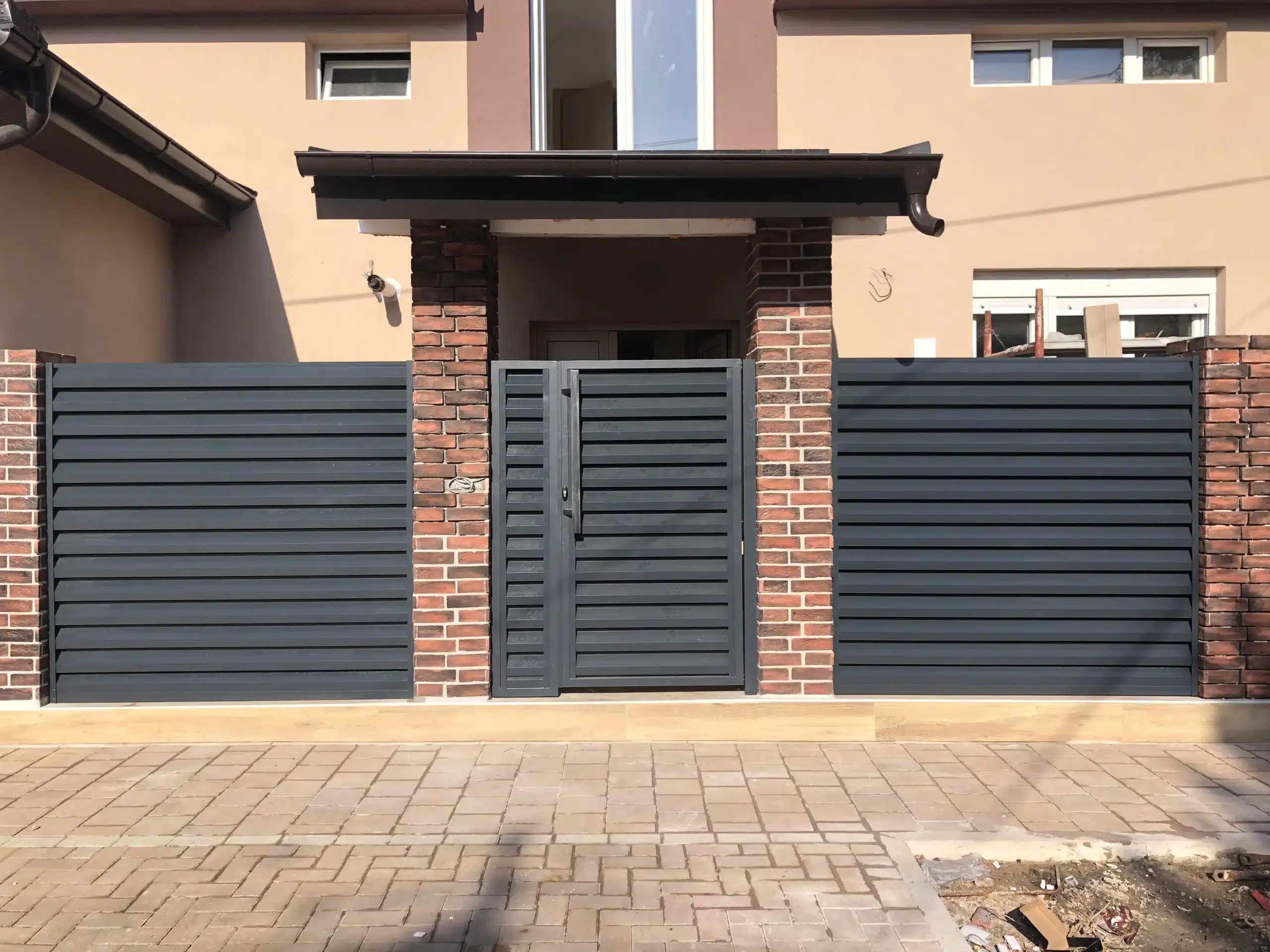Klizna kapija, dizajnirana u istom stilu, omogućava maksimalnu iskoristivost prostora i lako upravljanje. Uz ovu ogradu, dvorište ne samo da je postalo zaštićenije, već je dobilo i moderan i sofisticiran izgled.