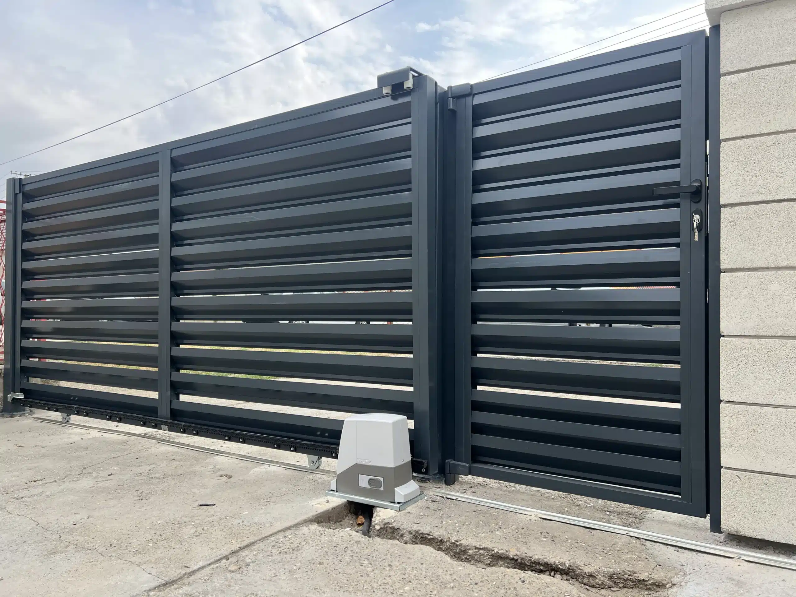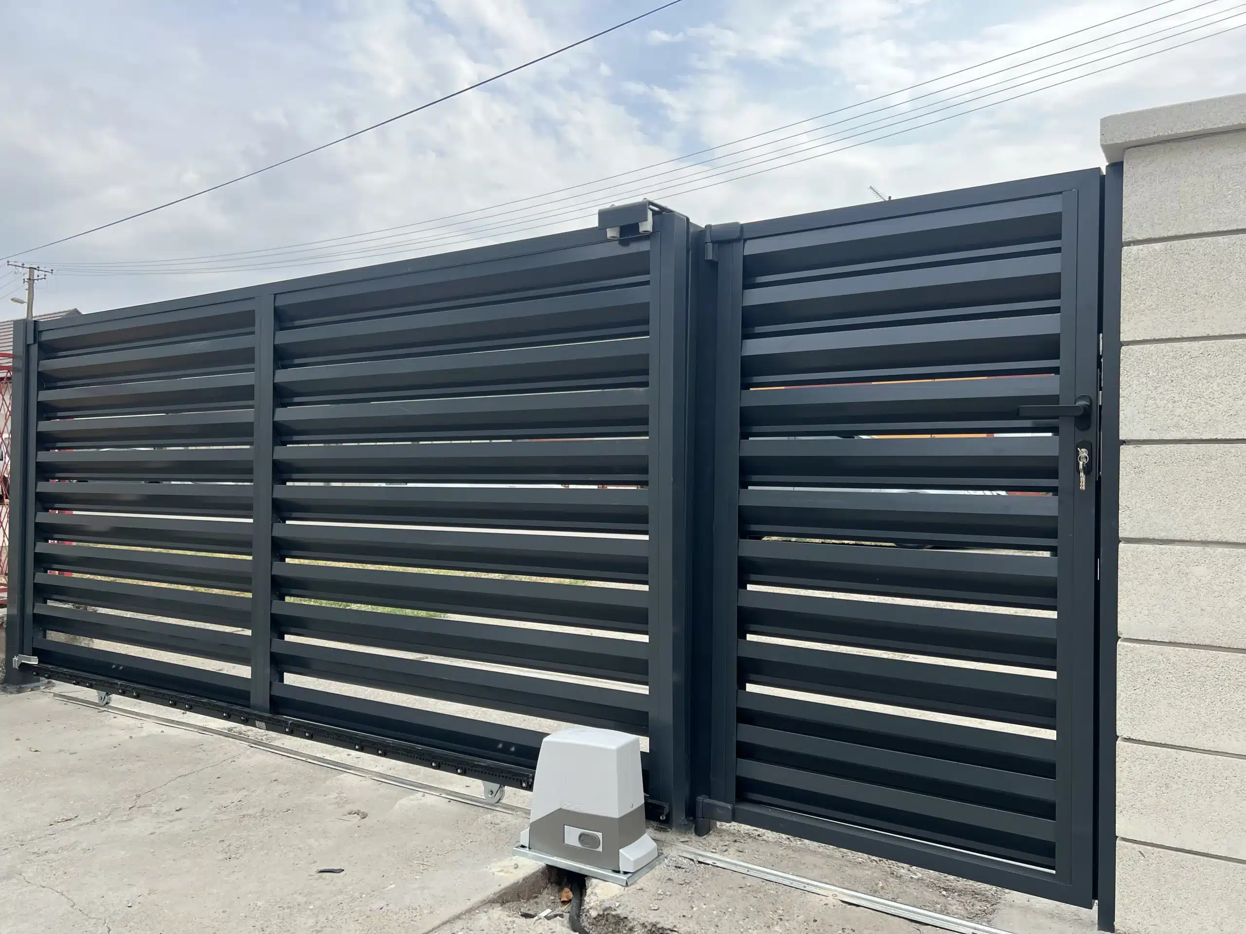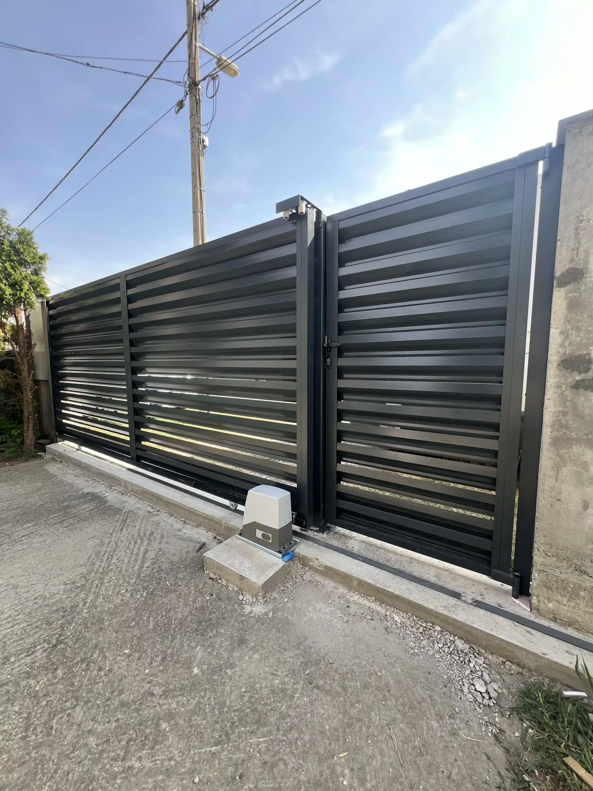 🔹️ Izrada i montaža ograde, pešačke kapije i klizne aluminijumske kapije sa “Life” motorom za klizne kapije.