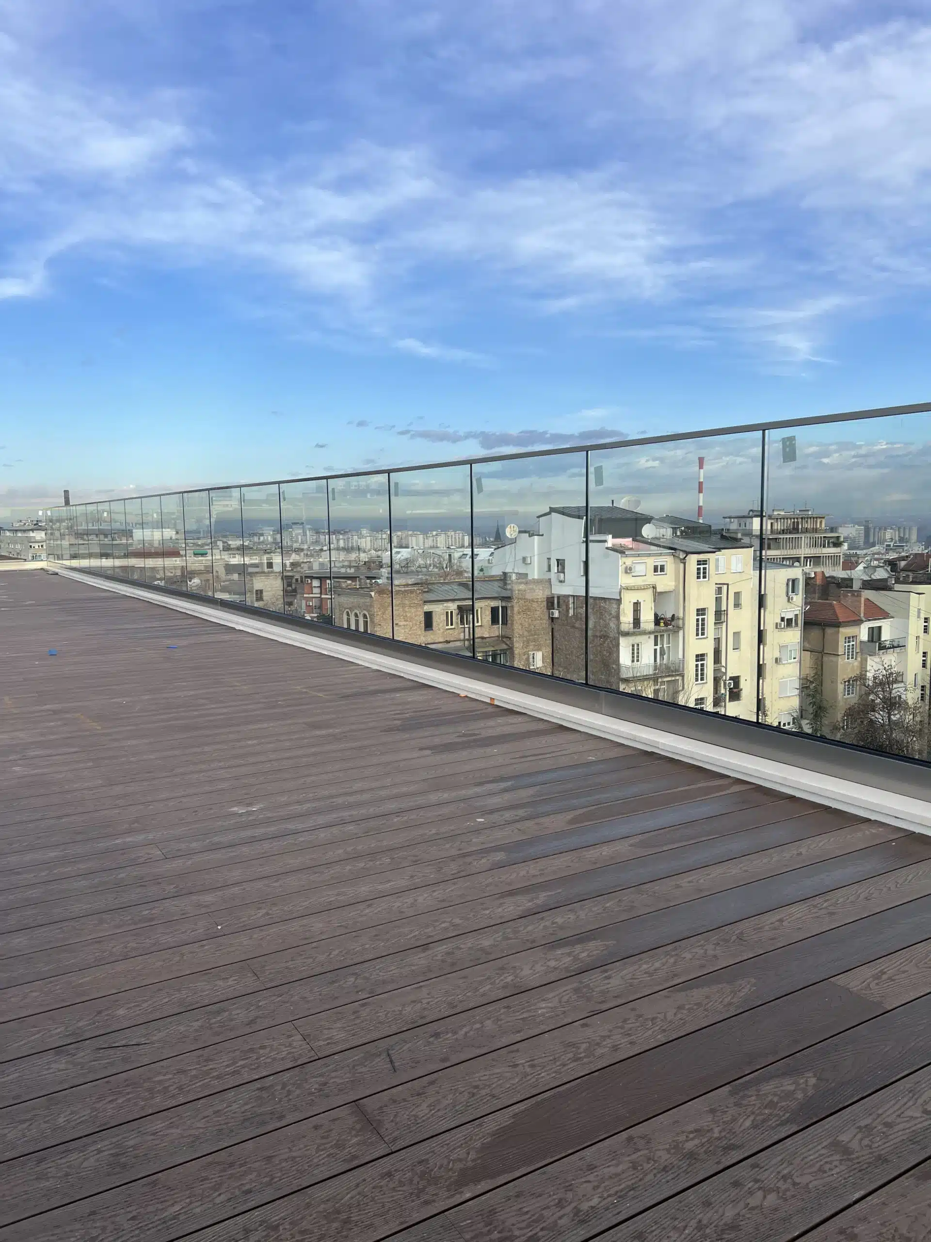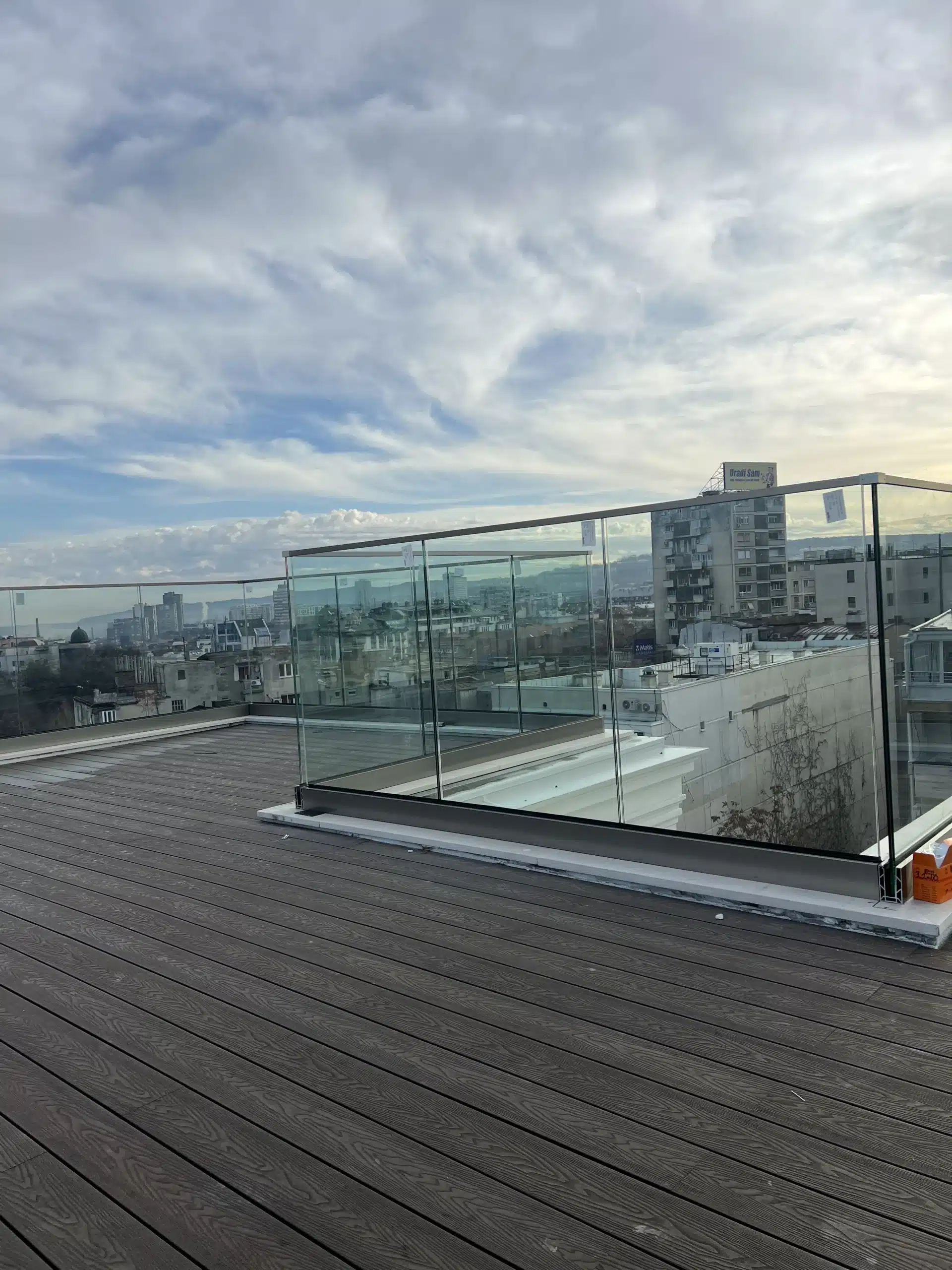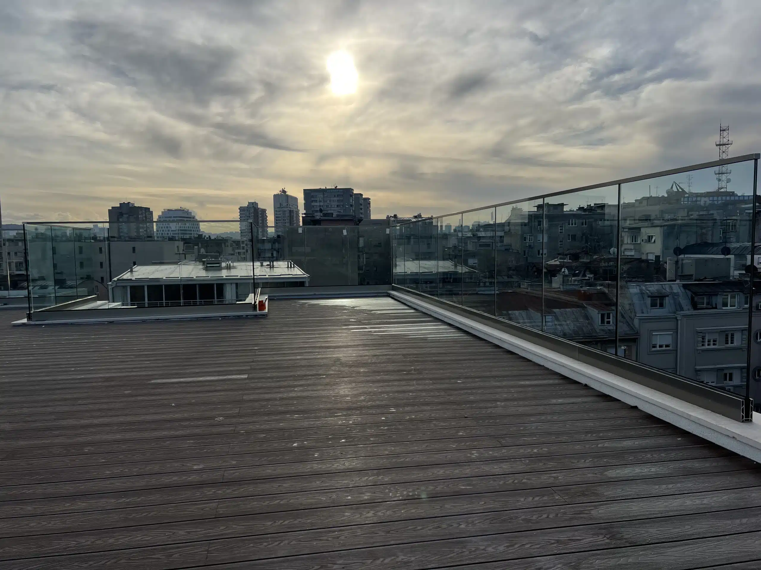 🔶️ Opis posla: 🔹️ Izrada i montaža staklene ograde na krovu stambene zgrade na Vračaru. Ugrađeno je kaljeno i laminirano staklo sa blagim stepenom zatamnjenja. 🔹️ Ugrađen je podni nosač od aluminijuma. Prednosti aluminijumskih nosača su: estetika, otpornost na koroziju, lakoća, čvrstoća, lako održavanje i dug vek trajanja.