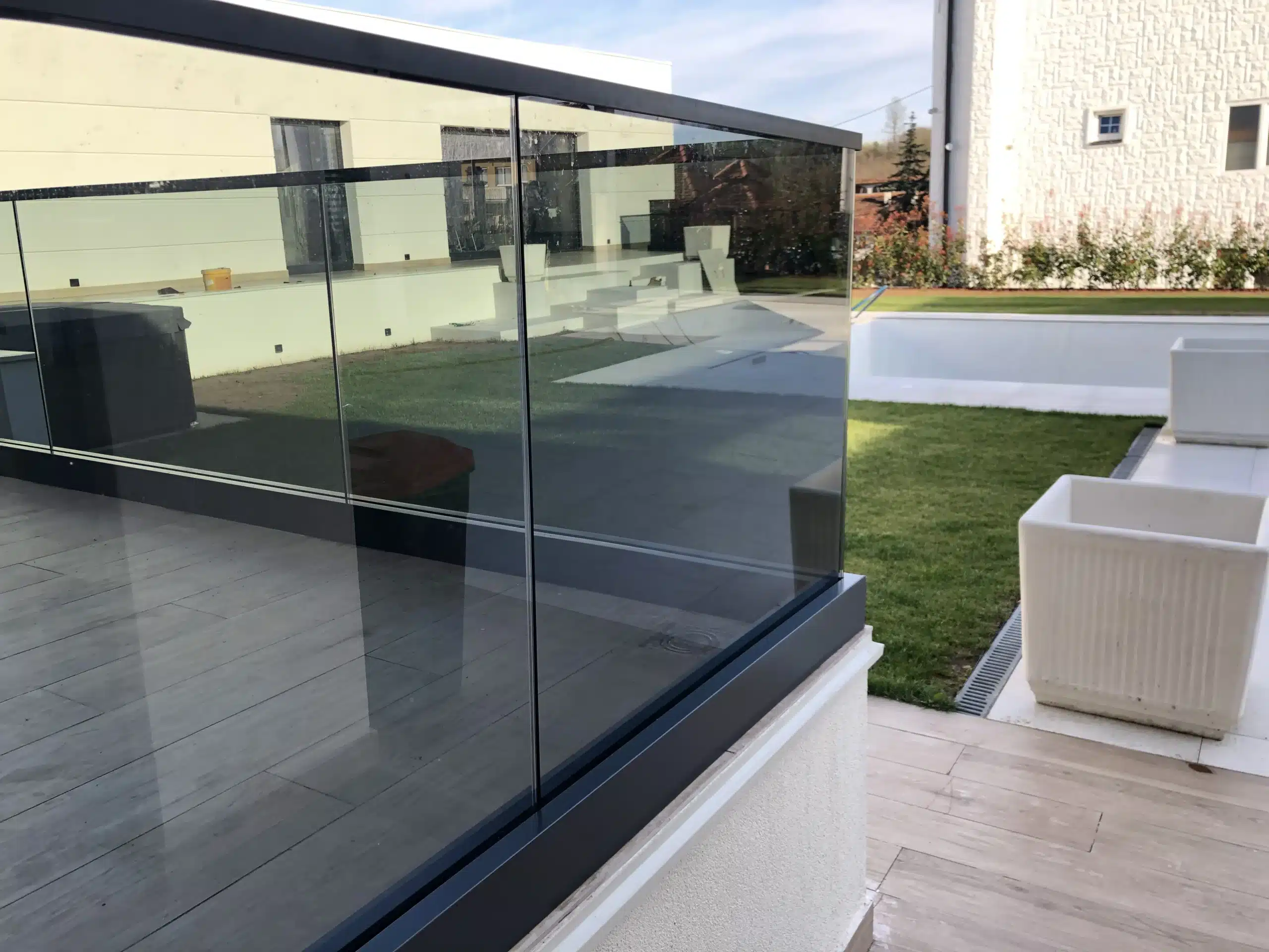 Koristili smo kaljeno, visoko kvalitetno staklo sa izraženim stepenom zatamnjenja, koje pruža privatnost, sigurnost i moderan izgled u isto vreme. Ova vrsta ograde ne zaklanja pogled, ali daje prostoru elegantan i luksuzan pečat.