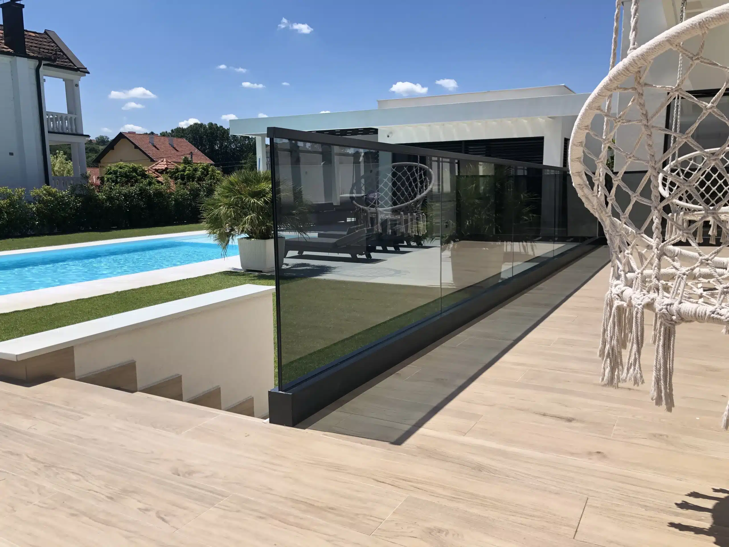 🔹 Kaljeno i zatamnjeno staklo – sigurnost na visokom nivou, ali i zaštita od sunca i pogleda 🔹 Minimalistički dizajn – idealan za moderne terase, posebno uz bazen i đakuzi 🔹 Laka i brza ugradnja – čista estetika bez suvišnih elemenata
